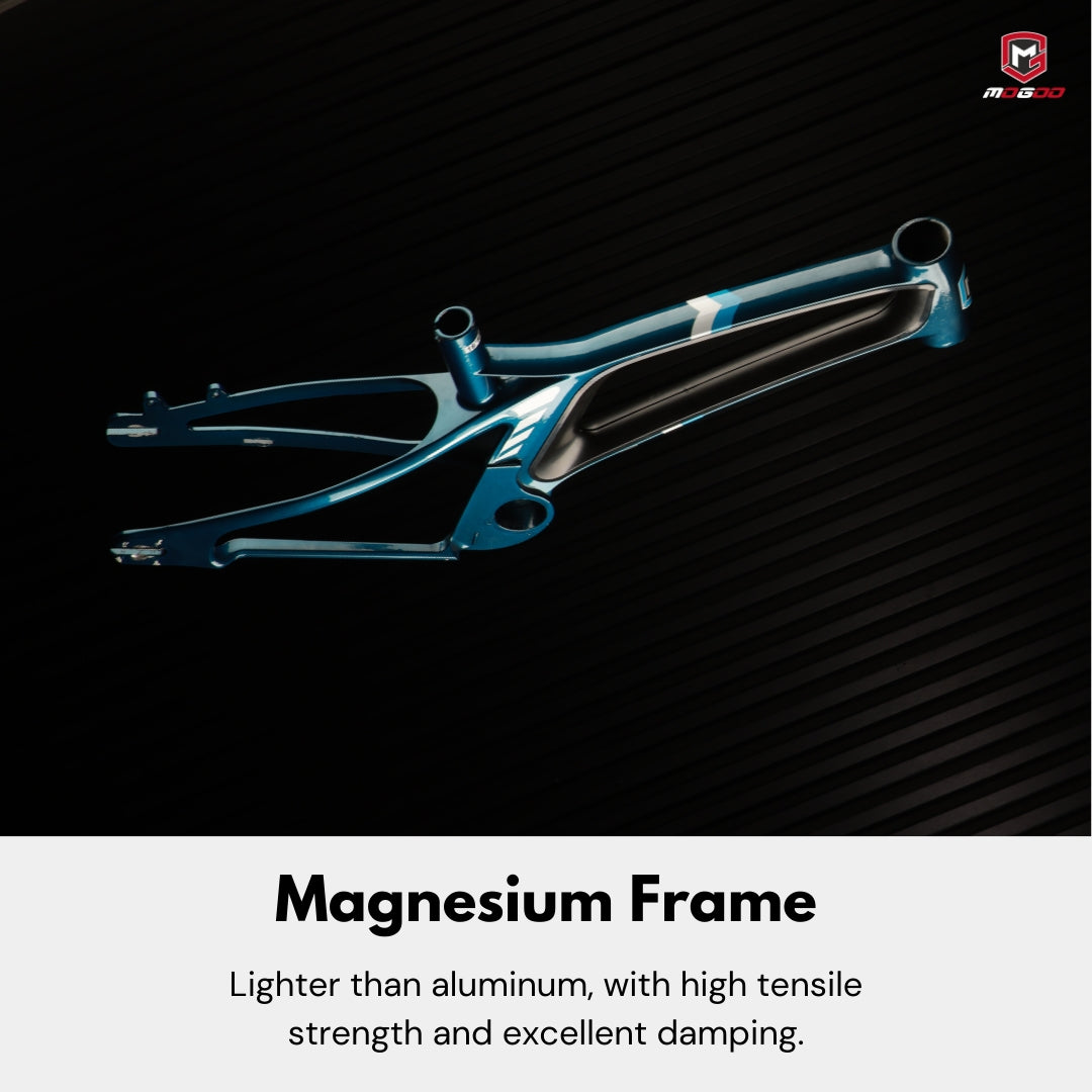 - Lightweight Magnesium Frame – Advanced magnesium construction reduces overall weight while maintaining strength, making the bike easier for kids to balance, steer, and control